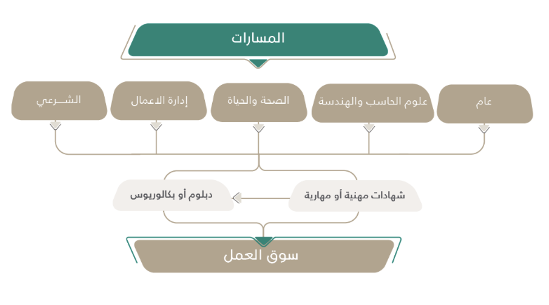 اعتمدت وزارة التعليم تفعيل الدليل الإرشادي لمدير المدرسة في نظام مسارات الثانوية العامة، والدليل الإرشادي لمنسق المسارات الذي تم إقراره في بداية العام الدراسي ١٤٤٢-١٤٤٣هـ، بتطبيق السنة الأولى المشتركة للمرحلة الثانوية في جميع المدارس الحكومية والأهلية، ومدارس تحفيظ القرآن الكريم، والمدارس السعودية في الخارج، والمدارس الليلية، ومدارس تعليم الكبيرات؛ لتحسين مخرجات العملية التعليمية وفق رؤية المملكة 2030، وربط مخرجات التعليم باحتياجات سوق العمل، وجاءت الأدلة على النحو التالي: