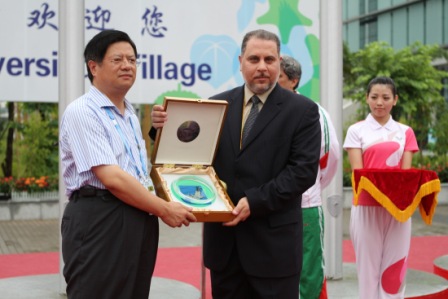 حضر مراسم رفع العلم محافظ مدينة شينجزن ورئيس اللجنة المنظمة للبطولة ورئيس وفد المملكة للبطولة رئيس الاتحاد الرياضي للجامعات السعودية الدكتور وليد بن عبد الرزاق الدالي والملحق الثقافي السعودي بجمهورية الصين الشعبية الدكتور صالح الصقري وأعضاء وفد المملكة المشارك في البطولة .