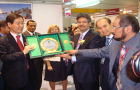 وكان الوزير الكوري قد قام عقب إفتتاحه المعرض بجولة داخل جناح المملكة بحضور القنصل في سفارة المملكة في سيئول الأستاذ مطلق البقمي إستمع خلالها إلى شرح من المشرف على الجناح ممثل وزارة التعليم العالي الأستاذ عبد الرحمن الزبن واستلم في ختام الجولة هدية تذكارية تقبلها شاكراً.
