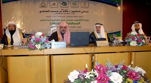 وفي ختام حفل الافتتاح تسلم معالي وزير التعليم العالي الدكتور العنقري هدية تذكارية من عمادة التعليم عن بعد سلمها معالي الدكتور أبا الخيل، وأخرى من مدير المركز الوطني للتعليم الإلكتروني والتعليم عن بعد الدكتور عبدالله المقرن.