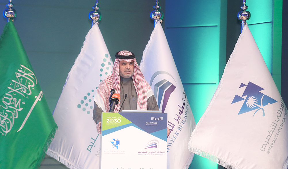 وأضاف معاليه أن المباني التعليمية لها دور كبير في تحقيق النهضة التعليمية المنشودة، والشراكة مع القطاع الخاص سيفتح باب التوسع في تلبية احتياج وزارة التعليم من المباني التعليمية المناسبة التي تخدم العمل التعليمي والتربوي.." وبلا شك أن مشاركة القطاع الخاص في تمويل بناء المدارس له دور كبير في المرحلة القادمة في سد الاحتياج الموجود، وتعلمون أن لدينا حوالي 5000 مبنى مستأجر حاليا في المدارس الحكومية، ونعمل بالإضافة إلى الدعم الحكومي المباشر لتمويل بناء المدارس على مشاركة القطاع الخاص في تمويل بناء المدارس وتشغيلها، وهذا بلا شك سيجعلنا إن شاء الله في موقع جيد للتخلص تدريجياً من المباني المستأجرة وتوفير بيئة تعليمية وتربوية مناسبة " .