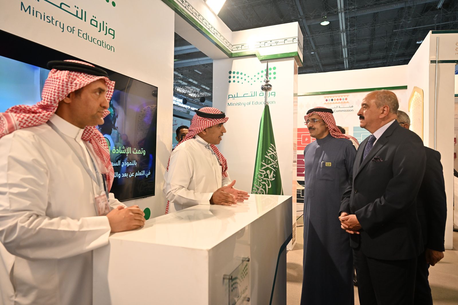 واطلع معاليه على محتوى الجناح وما يحتويه من منصّات وبرامج؛ مشيداً بالعروض المرئية المخصصة لمنظومة التعليم الإلكتروني، كمنصتي "مدرستي" و"روضتي، إضافةً إلى مجموعة أخرى من التطبيقات التفاعلية والإثرائية لمختلف المراحل التعليمية.