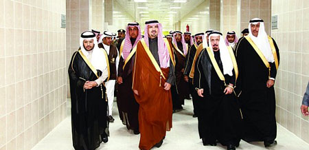 وكان في استقبال سموه لدى وصوله معالي وزير التعليم العالي ومعالي نائبه ومدير الجامعة وقياداتها الأكاديمية، حيث أزاح فور وصوله الستار إيذاناً بافتتاح المجمع، ثم تجَّول سموّه في المجمع قبيل انطلاق الحفل، حيث اطّلع خلال جولته على مرافق عددٍ من المباني، كما اطّلع على نماذج من القاعات الدراسية، وكذلك المعامل، إضافةً إلى زيارة سموه لمبنى المكتبة، والمرافق التعليمية الأخرى.