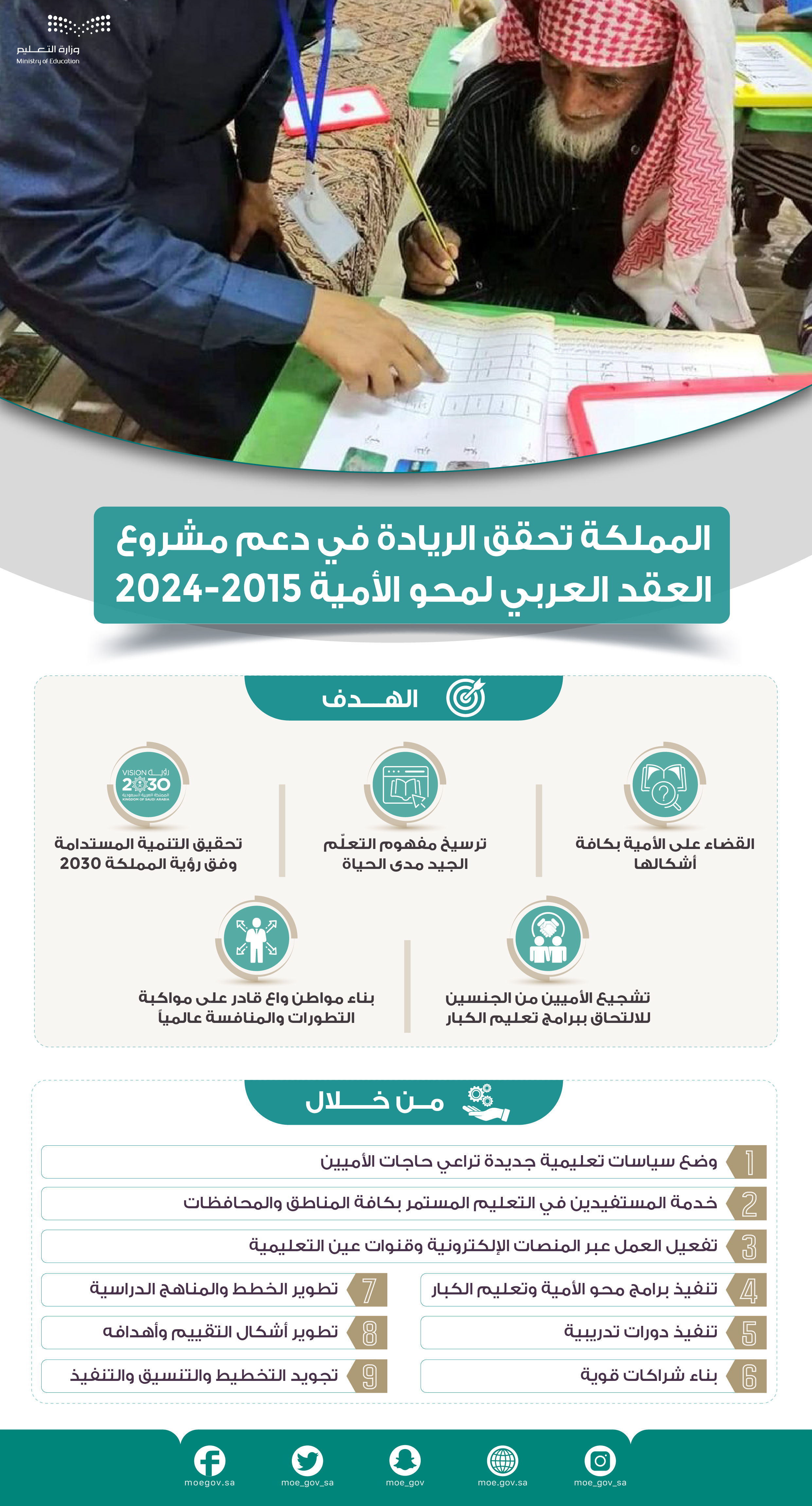 انتقل الاهتمام إلى مفهوم أوسع تمثل في التعليم المستمر والتعلم مدى الحياة لمساعدة جميع الفئات المستهدفة لمحو أمية القرن الحادي والعشرين والثورة الصناعية الرابعة تماشياً مع رؤية السعودية 2030