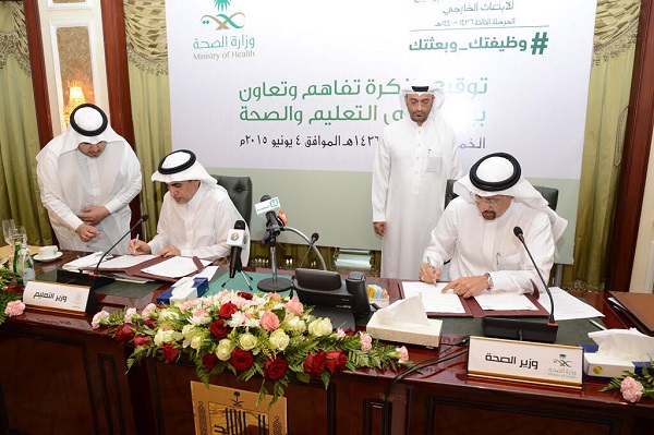 وقع معالي وزير التعليم الدكتور عزام بن محمد الدخيل ومعالي وزير الصحة المهندس خالد بن عبدالعزيز الفالح في مدينة أبها اتفاقية تفاهم وتعاون بين الوزارتين تتضمن قيام وزارة التعليم بابتعاث عشرين ألف مرشح لدراسة الطب والعلوم الطبية المساعدة، ضمن المرحلة الثالثة (وظيفتك وبعثتك) لبرنامج خادم الحرمين الشريفين للابتعاث الخارجي، ليتم توظيفهم بعد تخرجهم في القطاعات التابعة لوزارة الصحة.