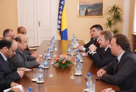 استقبل فخامة عضو مجلس الرئاسة بالبوسنة والهرسك المهندس باكر عزت بيجوفتش معالي وزير التعليم العالي الدكتور خالد بن محمد العنقري هذا اليوم الأربعاء 11/5/2011م في مقر مجلس رئاسة البوسنة والهرسك، وذلك بحضور ممثل رئيس مجلس الرئاسة فخامة السيد ينبوشا مرادمانوفيتش، وممثل لفخامة عضو مجلس الرئاسة جيلكو كوميتش.