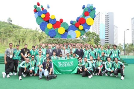 تمت أمس مراسم رفع علم المملكة العربية السعودية في القرية الرياضية الأولمبية بمدينة شينجزن الصينية التي تستضيف بطولة العالم السادسة والعشرون للجامعات التي تنطلق اليوم السبت وتستمر إلى 23 / 8 / 2011 م بمشاركة أكثر من 12 ألف رياضي يمثلون 152 دولة.