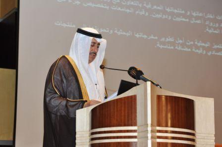 وأضاف وزير التعليم العالي في كلمته ، أن المراكز البحثية في الجامعات تنتقل حاليا إلى المراحل الإنتاجية وربطها بالواقع الصناعي والخدمي في المملكة بما يحقق بناء الاقتصاد المحلي المعرفي ويسهم في تنويع مصادر الاقتصاد الوطني وذلك بتطوير الصناعات التقنية المبنية على المعرفة ، مشيراً إلى أن وزارة التعليم العالي تسعى إلى تحقيق ريادة عالمية في شتى التخصصات العلمية من خلال الإبداع والتميز في الأداء وذلك للإسهام في بناء اقتصاد وطني مبني على المعرفة ، مشيراً إلى أن هذه المراكز ستفتح مجالات رحبة للتعاون مع جامعات عالمية مرموقة للاستفادة من خبراتها وتجاربها المتميزة مما يعزز ويبرز دور المملكة الريادي في تشجيع العلم والعلماء وإسهامها في دفع عجلة البحث العلمي.