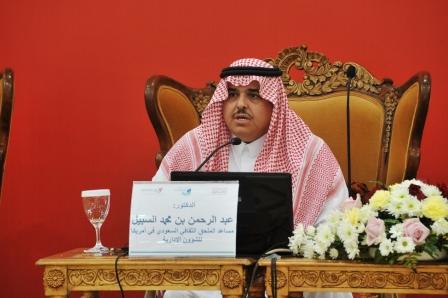 وتناول المستشار بوزارة التعليم العالي الدكتور عبد الرحمن الداغري إجراءات الابتعاث في المرحلة التاسعة، وألقى مدير الإعتماد والتوثيق الأكاديمي في الملحقية الثقافية بأمريكا الدكتور منير العتيبي محاضرة حول دراسة اللغة، كما استمع الحضور إلى شرح شامل من ممثلي السفارة الأميركية حول إجراءات التأشيرة والدخول.