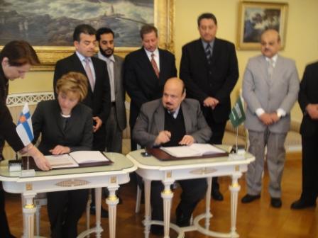 وقع معالي وزير التعليم العالي الدكتور خالد بن محمد العنقري ومعالي وزيرة التعليم والثقافة في فنلندا السيدة حنّا فيركونن يوم أمس الثلاثاء في العاصمة الفنلندية هلسنكي مذكرة تعاون لدعم العلاقات العلمية والتعليمية وتشجيعها بين الجامعات والمؤسسات الأكاديمية ومؤسسات البحث العلمي في البلدين الصديقين.