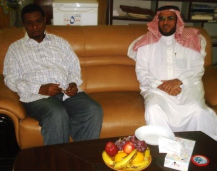 التقى الملحق الثقافي السعودي في السودان الدكتور هزاع بن عبد الله الغامدي بسعادة رئيس جامعة إفريقيا العالمية البروفيسور حسن مكي محمد بمقر الجامعة لمناقشة أحداث الملتقى العالمي لإسهامات القرآن الكريم في بناء الحضارة الإنسانية بمناسبة مرور 14 قرناً على نزوله .