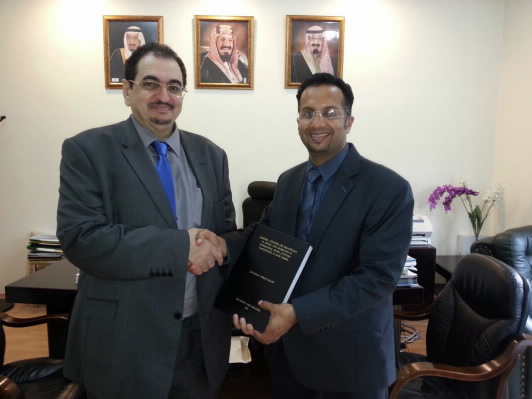 إلتقى سعادة الملحق الثقافي السعودي في ماليزيا الأستاذ الدكتور زايد بن عجير الحارثي في مكتبه بالملحقية بطالب الدكتوراه عبدالإله بن أحمد الصلوي المبتعث من جامعة الملك سعود والذي قدم نسخة من إطروحته لنيل درجة الدكتوراه بعنوان (المعوقات والاتجاهات وتقييم الكفاءة الذاتية لذوي الاحتياجات الخاصة نحو المشاركة في الأنشطة الرياضية الترويحية بالمملكة العربية السعودية) والتي تمت مناقشتها له وإجتاز المناقشة بإمتياز وبدون أي تعديلات . كما تم ترشيح الإطروحة لجائزة أفضل إطروحة على مستوى الدراسات العليا في جامعة العلوم الماليزية لعام 2014 م