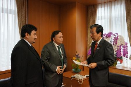 استقبل معالي وزير التعليم والعلوم الياباني الاستاذ هيرانو هيروفومي سعادة سفير خادم الحرمين الشريفين لدى اليابان الدكتورعبدالعزيز تركستاني، وسعادة الملحق الثقافي السعودي في اليابان الدكتور المهندس عصام بخاري في مكتبه بطوكيو .