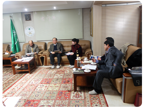 قام وفد من جامعة كونغ جو الوطنية برئاسة نائب رئيس الجامعة للشئون الدولية الأستاذ الدكتور "دوغ سو كيم" بزيارة الملحقية الثقافية بسفارة خادم الحرمين الشريفين في سيئول وذلك ظهر يوم الثلاثاء 29 ربيع الأول 1433هـ الموافق 21 فبراير 2012م. حيث كان في إستقبال الوفد سعادة الملحق الثقافي الدكتور تركي بن فهد العيار وتم خلال الزيارة بحث أوجه التعاون في مجال التعليم العالي بين جامعة كونغ جو الوطنية والجامعات السعودية وسبل تعزيزها مع التأكيد على تسهيل قبول الطلاب السعوديين في مختلف التخصصات العلمية . وقد رافق نائب رئيس الجامعة للشئون الدولية الأستاذ الدكتور "دوغ سو كيم" في هذه الزيارة كل من الدكتور "جي مون لي" مدير معهد اللغة الكورية والثقافة بالجامعة و السيدة "يونغ سواك كونغ" مدير فريق مكتب الشئون الدولية و السيدة "جي هي يو" من مكتب الشئون الدولية بالجامعة. وقد أعرب نائب رئيس الجامعة للشئون الدولية الأستاذ الدكتور "دوغ سو كيم" والوفد المرافق له في ختام الزياره عن شكرهم وتقديرهم للملحق الثقافي على حسن الإستقبال وكرم الضيافة.