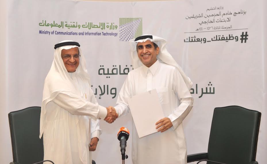 وقع معالي وزير التعليم الدكتور عزام بن محمد الدخيل ومعالي وزير الاتصالات وتقنية المعلومات الدكتور محمد بن إبراهيم السويل اتفاقية ابتعاث 500 مرشحا ضمن المرحلة الثالثة لبرنامج خادم الحرمين الشريفين للابتعاث #وظيفتك_وبعثتك.