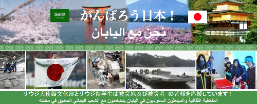 بعد أحداث الزلزال المدمر الذي ضرب اليابان في 11 مارس 2011م بقوة 9 درجات مخلفا آثارا تدميرية وأعدادا كبيرة من الضحايا والمفقودين، قامت الملحقية الثقافية السعودية في طوكيو بإطلاق موقع "نحن مع اليابان" تعبيرا عن التضامن مع الشعب الياباني الصديق في المحنة التي يمر بها حيث اشتمل الموقع على الأخبار الخاصة ببرقيات التعزية لخادم الحرمين الشريفين وسمو ولي عهده الأمين حفظهم الله لجلالة امبراطور اليابان وكلمة شكر من سيادة رئيس الوزراء الياباني لجميع الدول والهيئات التي بعثت برقيات العزاء وساندت اليابان في هذا الموقف العصيب بالإضافة إلى صور ومقاطع فيديو ومعلومات عن الزلزال والنازحين وكيفية إدارة الأزمات في اليابان.