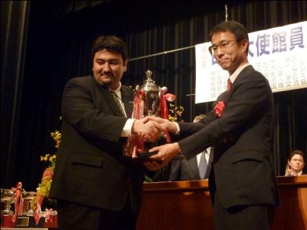 تسلم الملحق الثقافي السعودي في اليابان الدكتور عصام أمان الله بخاري شهادة تقدير وكأس وزير الخارجية اليابانية الأستاذ كوئيتشيرو غيمبا بعد تحقيقه المركز الأول في مسابقة الخطابة باللغة اليابانية للعام 2011م على مستوى الدبلوماسيين الأجانب في نسختها الرابعة عشرة في إنجاز يسجل باسم السفارات العربية والإسلامية في اليابان.