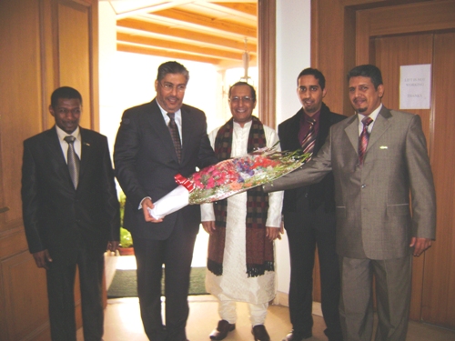 زار سعادة سفير خادم الحرمين الشريفين الأستاذ : فيصل بن حسن طراد يوم الثلاثاء مقر الملحقية الثقافية السعودية في نيودلهي، وكان في استقباله الملحق الثقافي السعودي الدكتور إبراهيم بن محمد البطشان ، وقد ألقى سعادة السفير كلمة موجزة بهذه المناسبة، قدر فيها الجهود التي تقوم بها الملحقية الثقافية في خدمة الطلاب السعوديين في الهند ، وقدر كذلك اهتمامها بكل ما يسهم في تطوير العلاقات بين المملكة والدولة المضيفة.