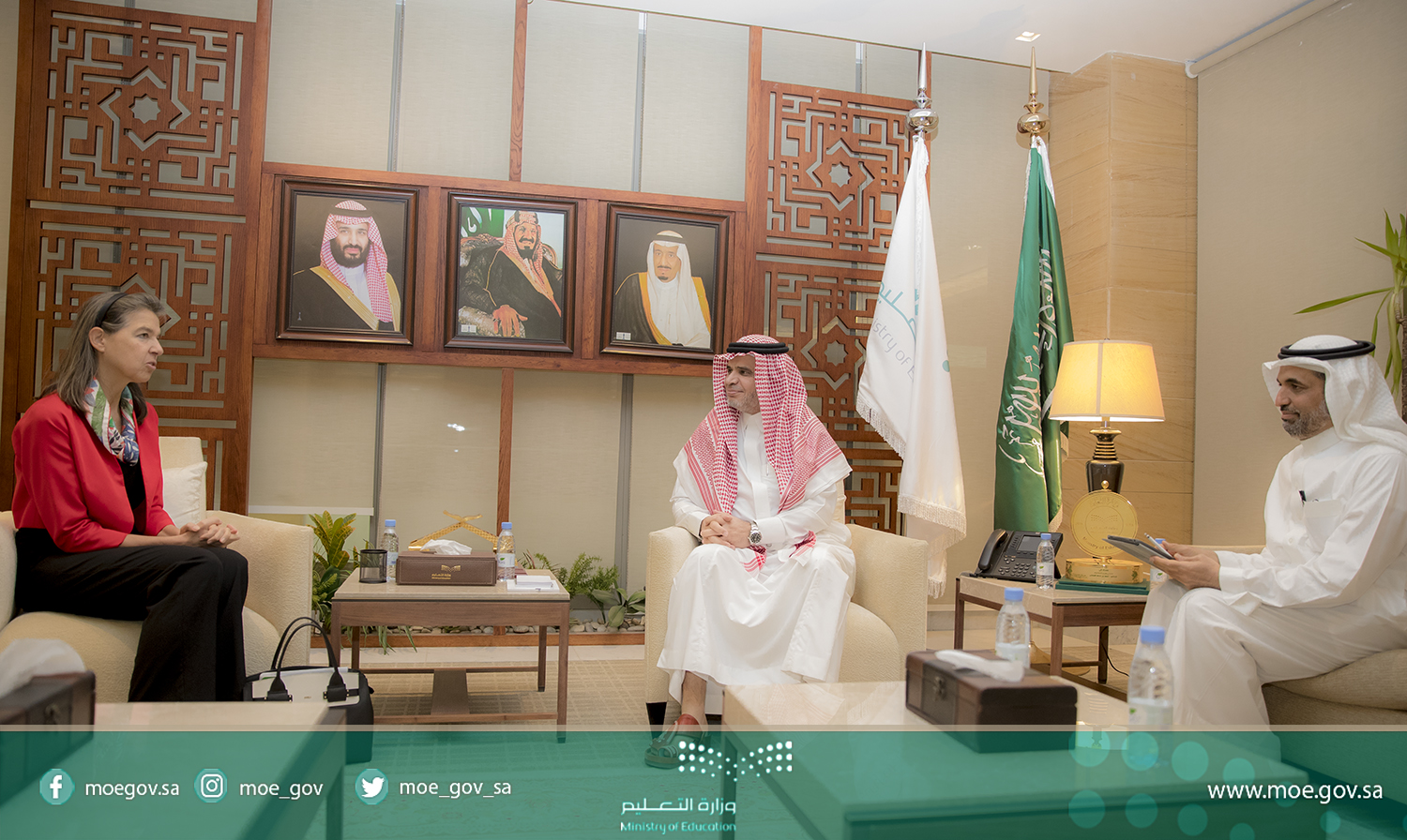 استقبل معالي وزير التعليم الدكتور أحمد بن محمد العيسى في مكتبه صباح اليوم السيدة دومينيك مينور - سفيرة مملكة بلجيكا لدى المملكة، وتم خلال اللقاء تبادل الحديث حول التعليم بشقيه العام والجامعي والبرامج المقدمة في كلا البلدين، كما نوقش خلال اللقاء سبل الإفادة من الخطط والبرامج التطويرية التي تنفذها مؤسسات التعليم في البلدين.