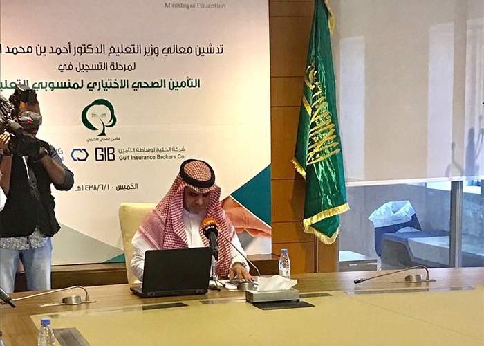 دشن معالي وزير التعليم الدكتور أحمد بن محمد العيسى اليوم (الخميس) برنامج التأمين الصحي الاختياري لمنسوبي التعليم بالشراكة مع شركة تكافل الراجحي، الذي أُعلن عنه قبل أسبوعين من الآن، متقدماً زملاءه في الوزارة بالتسجيل في البرنامج، وأعلنت وزارة التعليم خلال حفل التدشين عن رابط التسجيل في الموقع الإلكتروني للراغبين بالاستفادة من التأمين.