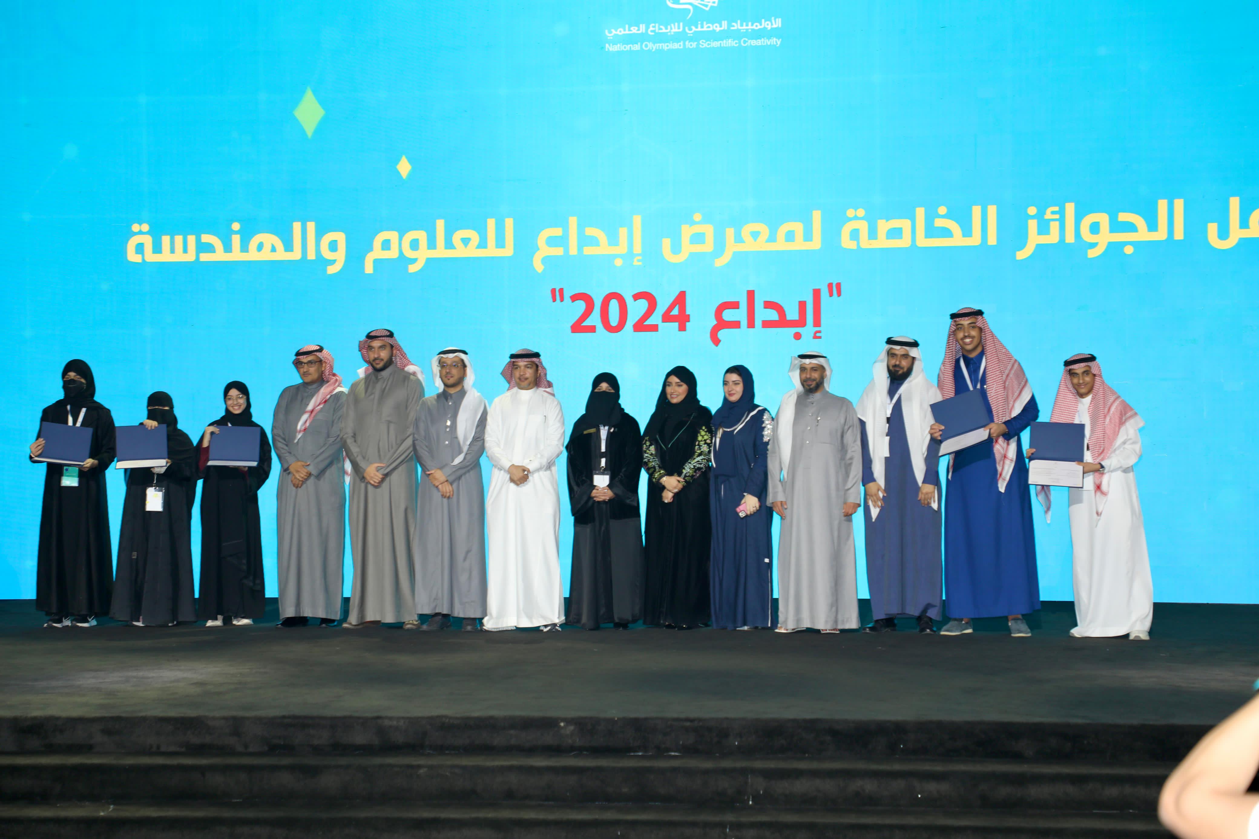( 97 ) طالباً وطالبة بعدد من الجوائز الخاصة والدولية وذلك على هامش مشاركتهم في معرض إبداع للعلوم والهندسة " إبداع" 2024 والذي يقام بمقر جامعة الملك سعود بالرياض خلال الفترة 1-4 فبراير الجاري.