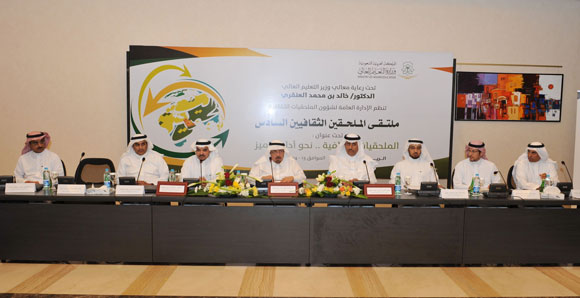 افتتح معالي وزير التعليم العالي الدكتور خالد بن محمد العنقري صباح اليوم السبت 3/6/1434هـ في مقر الوزارة بالرياض الملتقى السنوي السادس للملحقين الثقافيين السعوديين في الخارج الذي يعقد تحت شعار