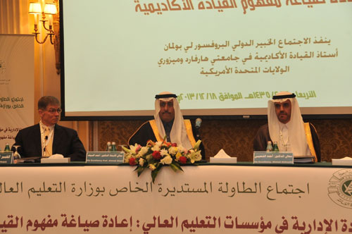 وبحضور نحو 70 مشاركاً من وكلاء وزارة التعليم العالي، ووكلاء ووكيلات الجامعات السعودية بمشاركة 22 جامعة ، عقد اجتماع الطاولة المستديرة، والذي استضاف الخبر الدولي في مجال القيادة الأكاديمية البروفيسور لي بولمان.