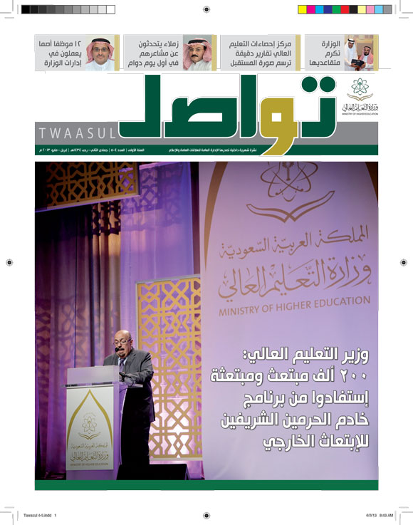 صدر مؤخراً عدد جديد من النشرة الداخلية لوزارة التعليم العالي (تواصل) متضمنا العديد من الموضوعات ذات العلاقة بأنشطة الوزارة وأخبارها.