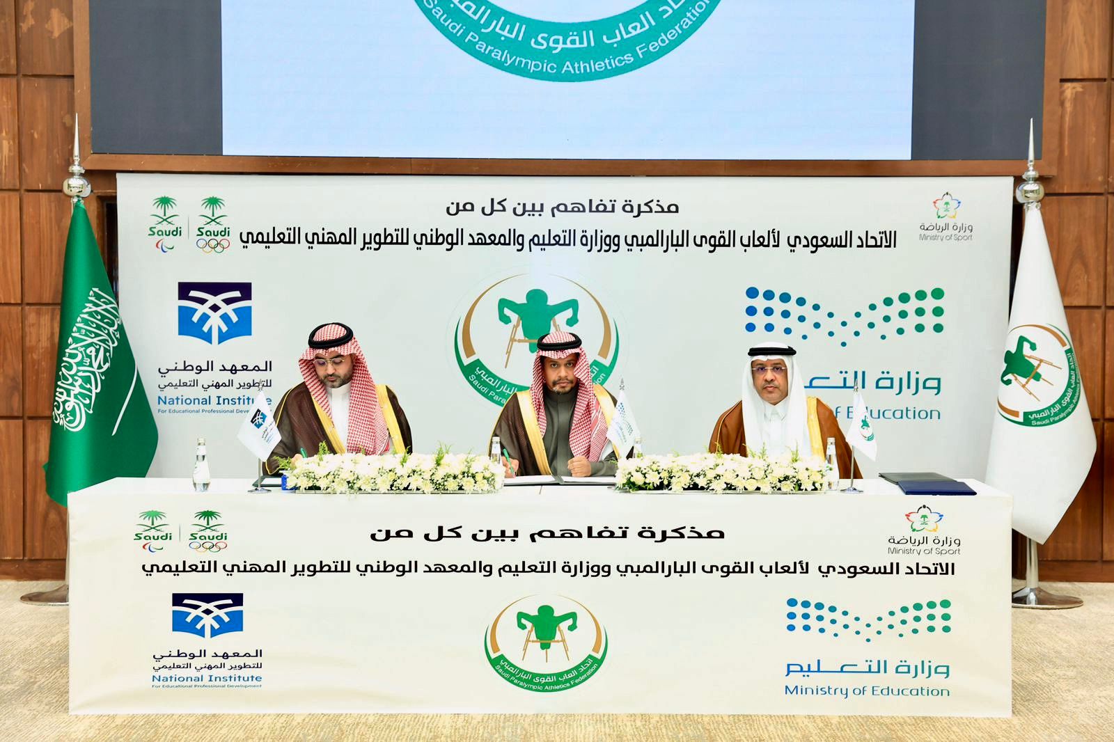 وزارة التعليم توقّع مذكرة تفاهم مع الاتحاد السعودي لألعاب القوى البارالمبية والمعهد الوطني للتطوير المهني التعليمي