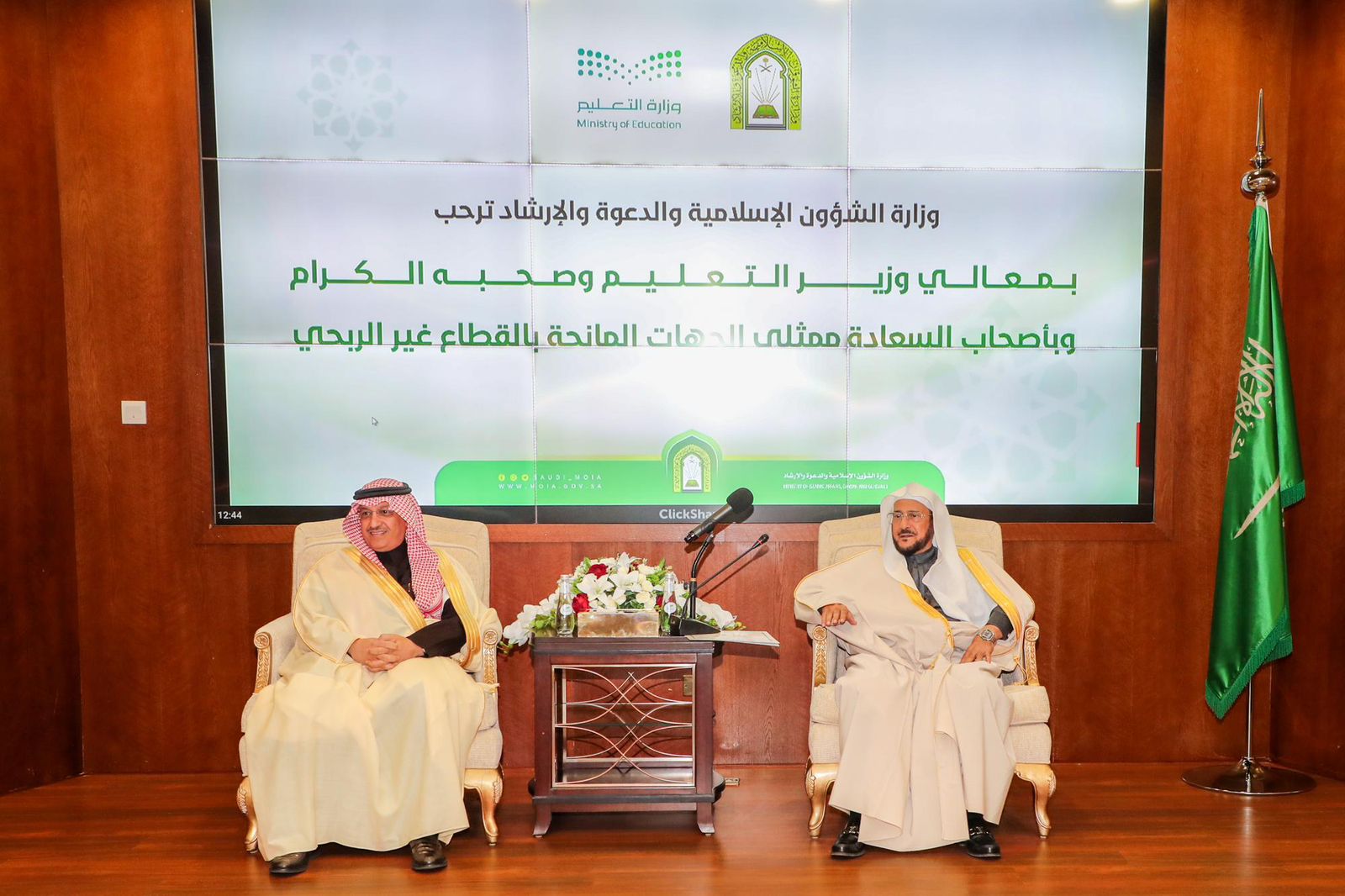 ووقّع معالي وزير التعليم الأستاذ يوسف بن عبدالله البنيان، ومعالي وزير الشؤون الإسلامية الشيخ الدكتور عبداللطيف بن عبدالعزيز آل الشيخ، مذكرة تفاهم؛ تهدف إلى تعزيز التعاون بين الوزارتين في مجالات التوعية والتعليم، بما يشمل إعداد المبتعثين قبل سفرهم، واستثمار خريجي الجامعات السعودية الدوليين كقوة ناعمة لنشر منهج الاعتدال في بلدانهم.