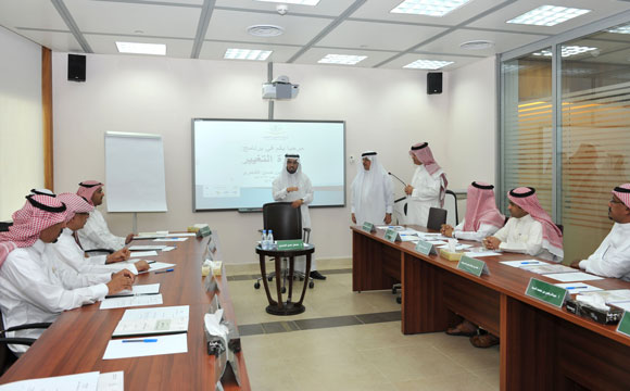افتتح وكيل وزارة التعليم العالي للشؤون التعليمية الدكتور/ محمد العوهلي صباح اليوم الأثنين 24/7/1434هـ الحلقة التدريبية الخاصة الموجهة لكبار الموظفين ، وذلك في مقر وزارة التعليم العالي بعنوان ( إدارة التغيير Change Management ) ، وهو البرنامج الثاني الموجه للفئة القيادية من مديري العموم ومديري الإدارات الرئيسية وقيادات الصف الثاني والمستشارين ، وقد حضر الحلقة ( 17 ) مسؤولاً .