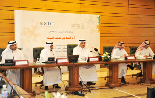 افتتح معالى نائب الوزير الدكتور /أحمد بن محمد السيف اليوم الخميس الاجتماع العاشر لعمداء شؤون المكتبات بالجامعات الحكومية السعودية، وقد القى معاليه كلمة أشار فيها الى إنجاز المكتبة الرقمية السعودية، تسجيل أكثر من 260 ألف عنوان كمحتوى رقمي، إضافة إلى توثيق 14 الف رسالة علمية للماجستير والدكتوراة في الجامعات السعودية والملحقيات الثقافية.