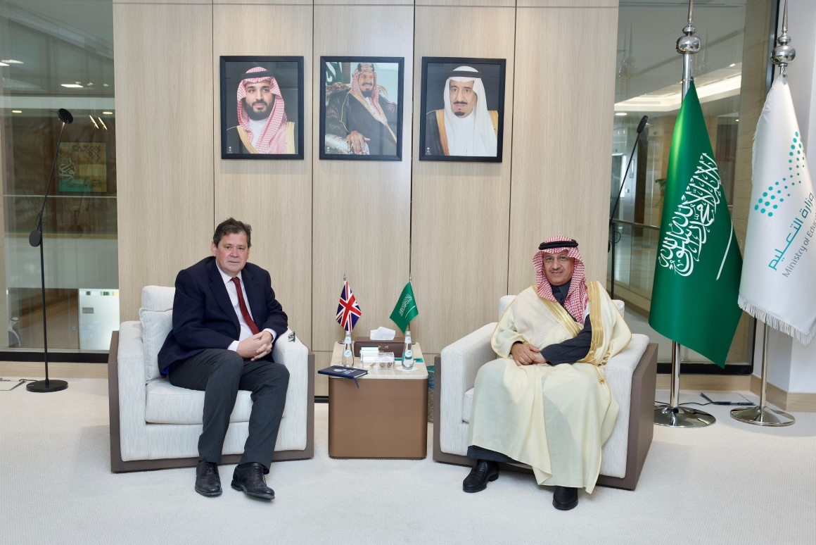 وتناول اللقاء أوجه التعاون القائمة بين البلدين ضمن مذكرة التفاهم للتعاون العلمي والتعليمي، وبرنامج تبادل الطلبة والباحثين بين الجامعات السعودية والبريطانية، وكذلك بحث التعاون في دعم تحقيق مستهدفات رؤية السعودية 2030 في تطوير قطاع التعليم، ومشاركة السياسات المتعلقة بتطوير البرامج التعليمية للطلبة ذوي الاحتياجات الخاصة، وتطوير المناهج الدراسية، والتعليم في مرحلة الطفولة المبكرة.