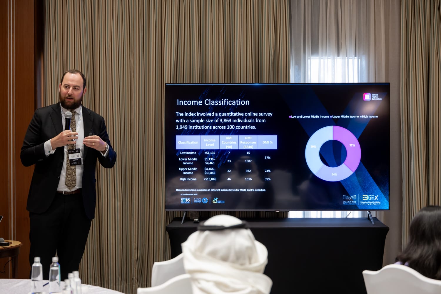 وأضاف أن الاتجاهات العالمية في النضج الرقمي من خلال مؤشر النضج الرقمي لتصنيف التايمز العالمي للجامعات يسهم في تحفيز قادة الجامعات على تقييم جاهزية مؤسساتهم للتعليم الرقمي، لافتاً إلى أهمية فهم هذا المؤشر كمنظور حول الاتجاهات العالمية في النضج الرقمي.